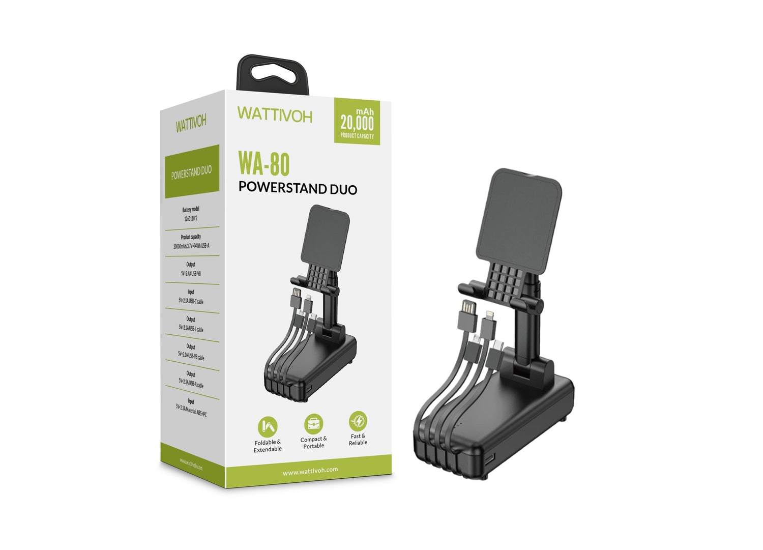 ابقَ على اتصال مع بنوك الطاقة الذكية من واتيفوه بقدرة 22.5 واط. كابلات مدمجة، وتوصيل سريع.